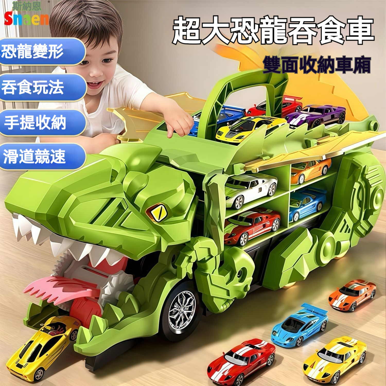 【霸王龍吞噬基地】智慧彈射軌道合金車組 變形恐龍一口吞食 男孩的終極盛宴禮物