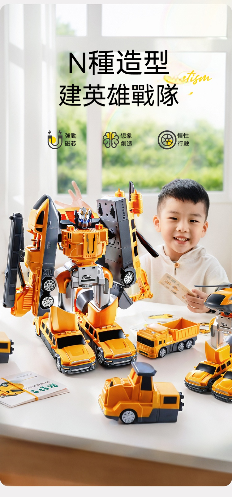 英雄戰隊集結!磁力機器人工程組,N種造型隨心變,慣性行駛暢玩無阻。