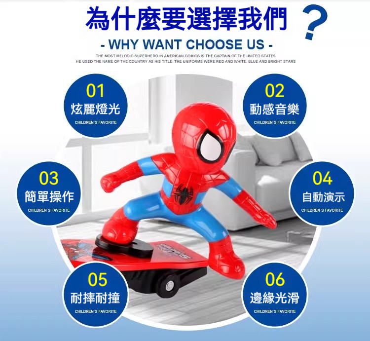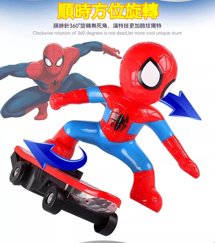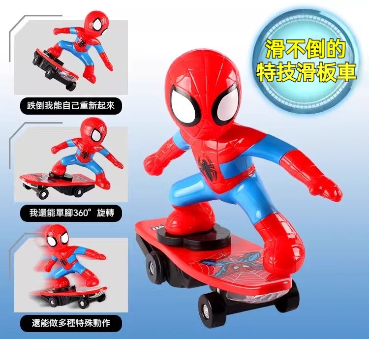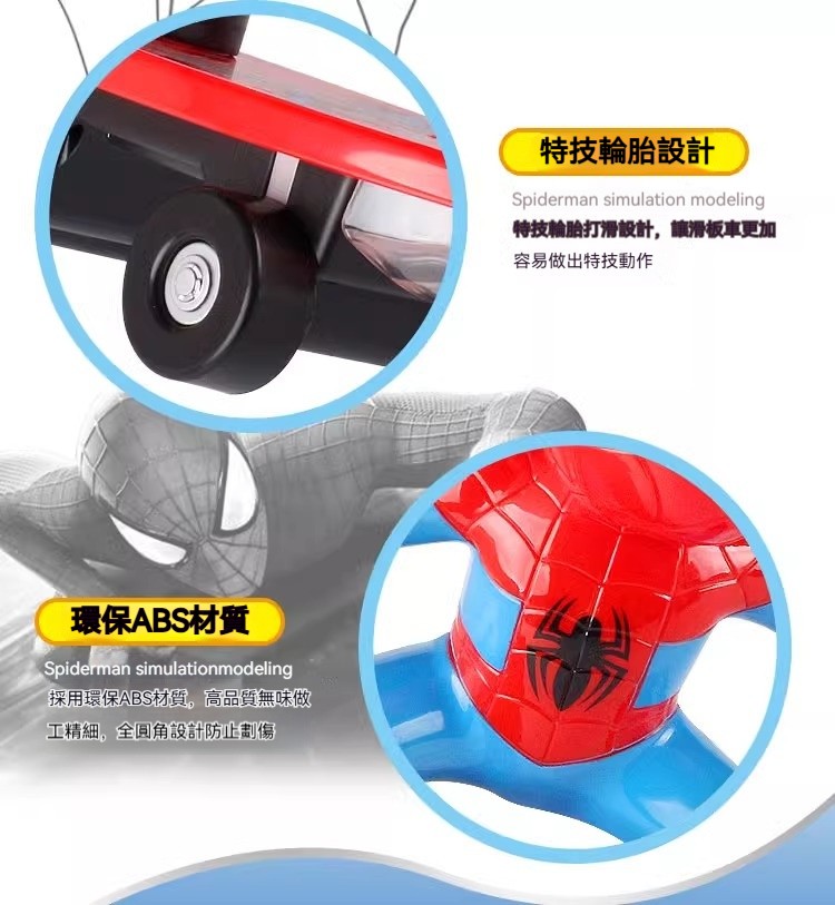 【漫威聖誕禮物】蜘蛛人特技滑板車|360°旋轉翻滾+動感音樂燈光,陪伴孩子成為超級英雄!