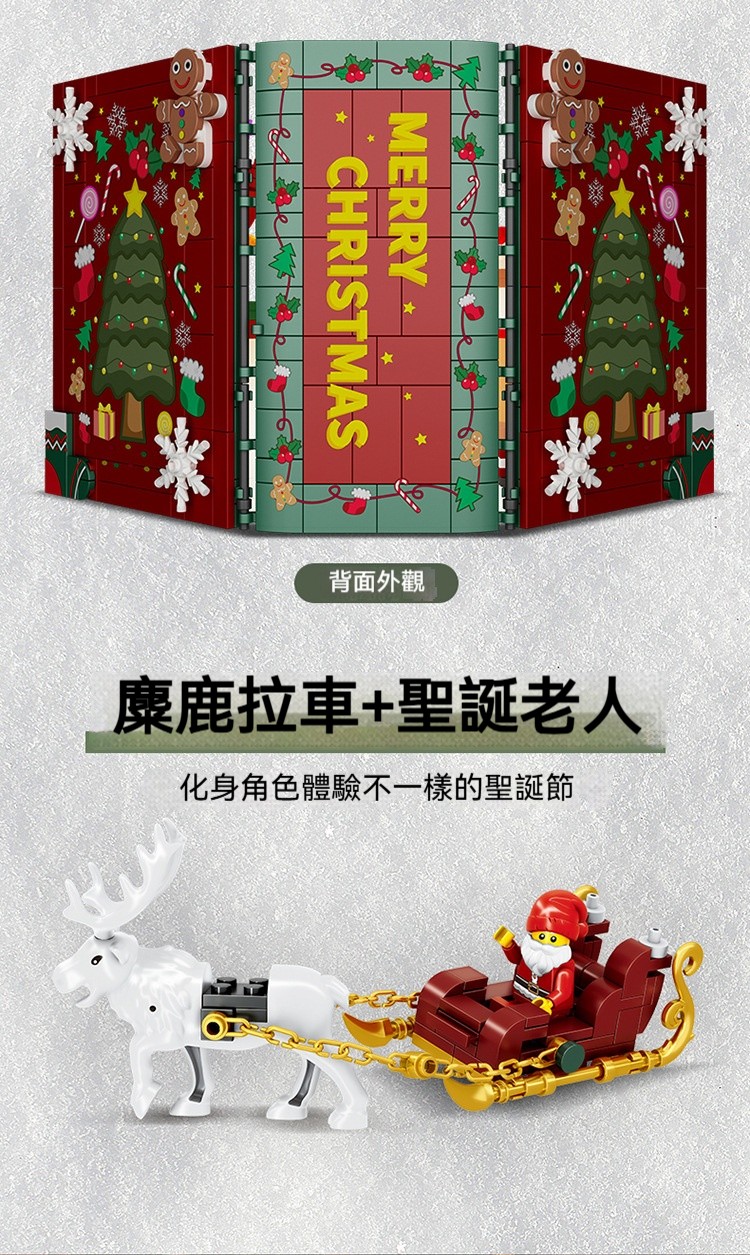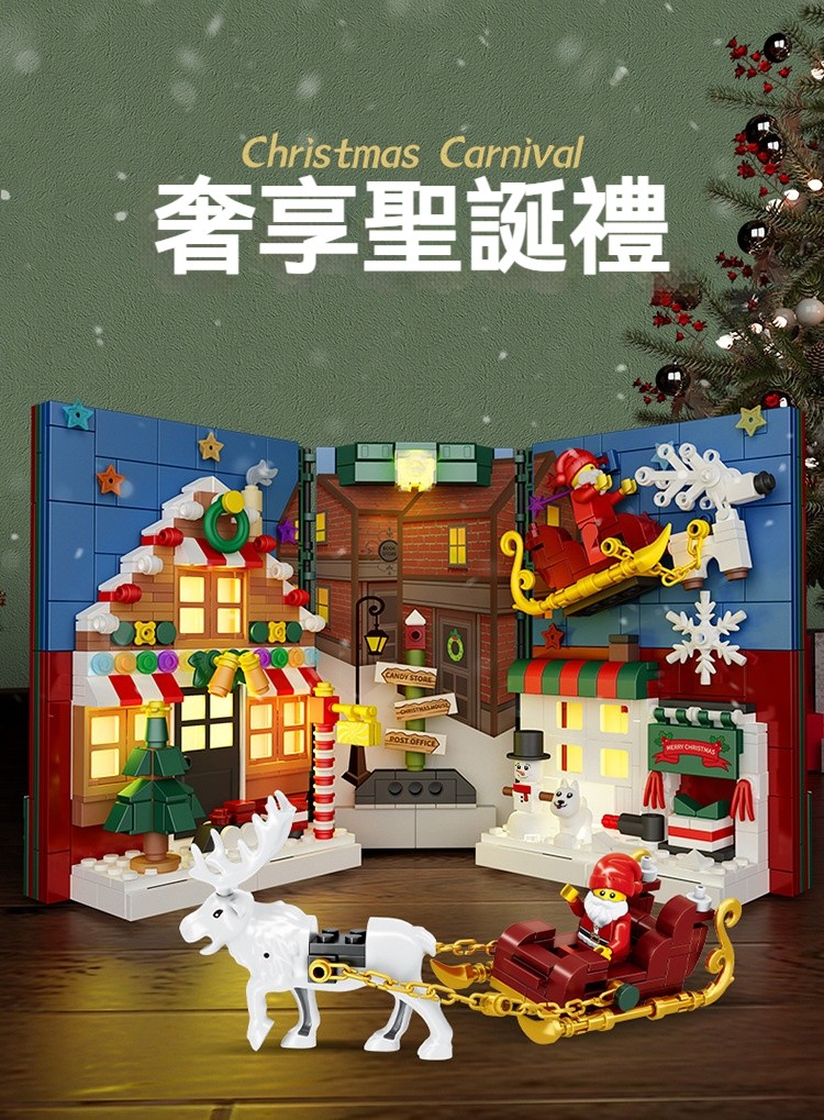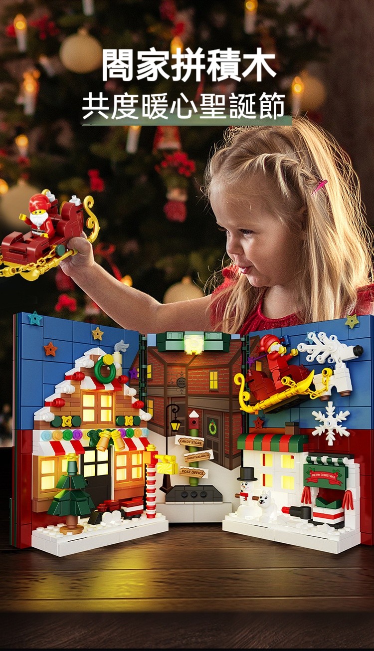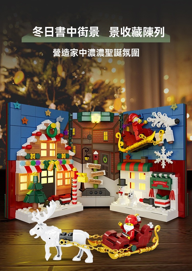 【會發光的魔法聖誕書】887顆粒書中街景|打開書本瞬間,聖誕老人駕著麋鹿驚喜現身!