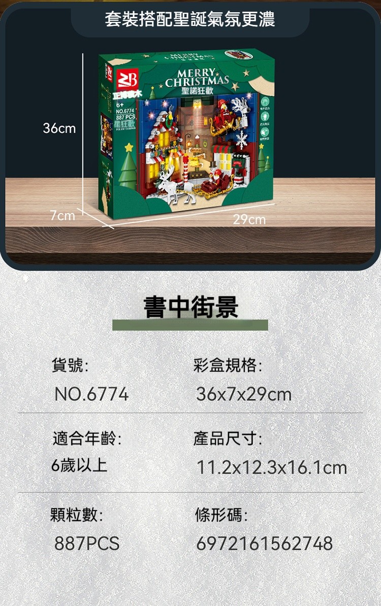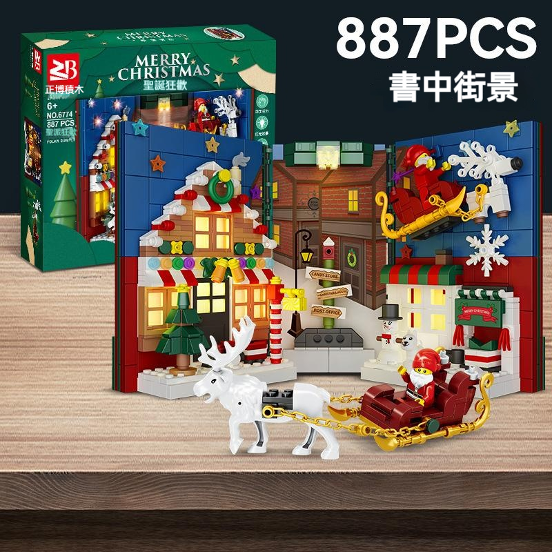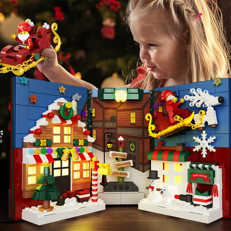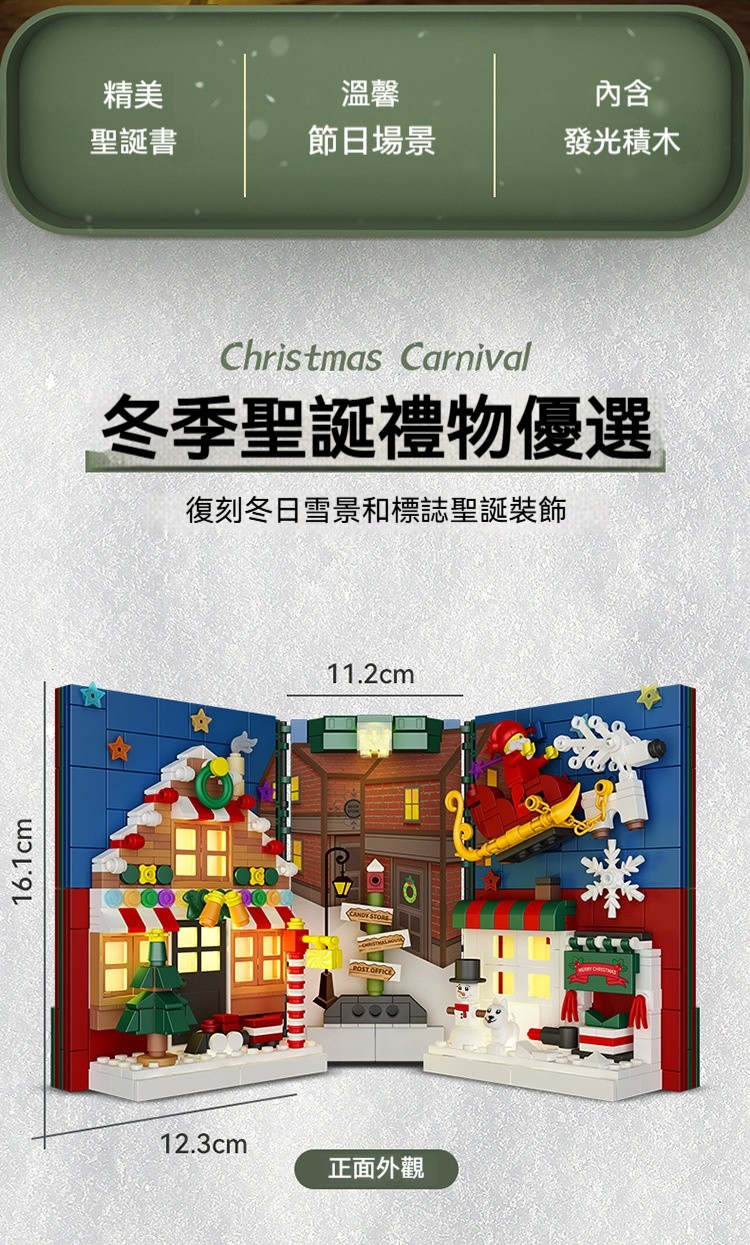 【會發光的魔法聖誕書】887顆粒書中街景|打開書本瞬間,聖誕老人駕著麋鹿驚喜現身!