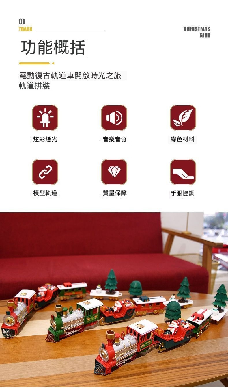 聖誕傳統新演繹!復古軌道火車四節車廂,炫彩燈光+聖誕音樂,打造傳家級節日裝飾