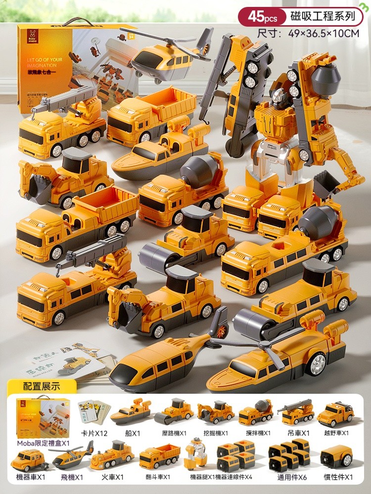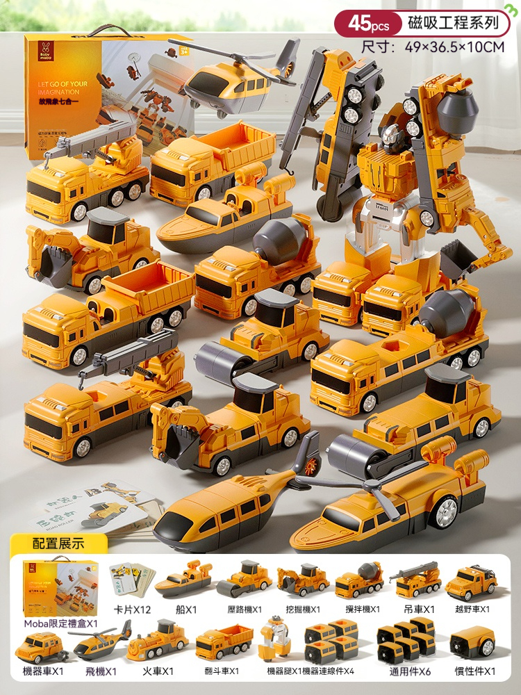 英雄戰隊集結!磁力機器人工程組,N種造型隨心變,慣性行駛暢玩無阻。
